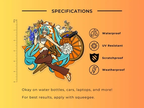 Get ready, Longhorns! Your favorite idol Hatsune Miku is here and ready to Hook 'Em in style! This sticker is perfect for your car, cooler, water bottle, laptop, or any other place you can think of. Better make room though, because at 6", this is one Texas-sized sticker!